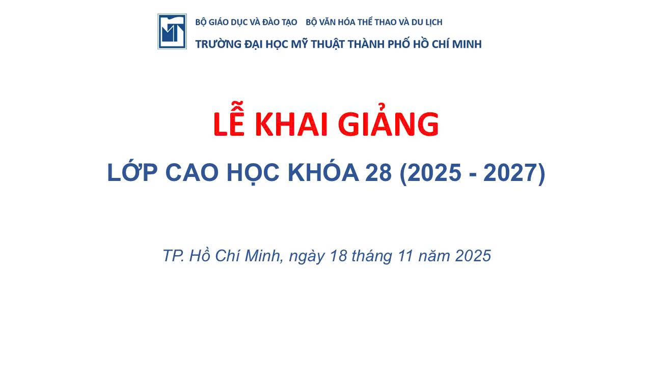Sáng này 18/11/2025, Bộ phận Sau đại học (Phòng Đào tạo - QLKH và Hợp tác Quốc tế), trường Đại học Mỹ thuật TP.HCM đã tổ chức Lễ khai giảng Thạc sĩ Mỹ thuật cho các học viên khóa 28 tại phòng họp lầu 3 Tòa nhà Lý thuyết.