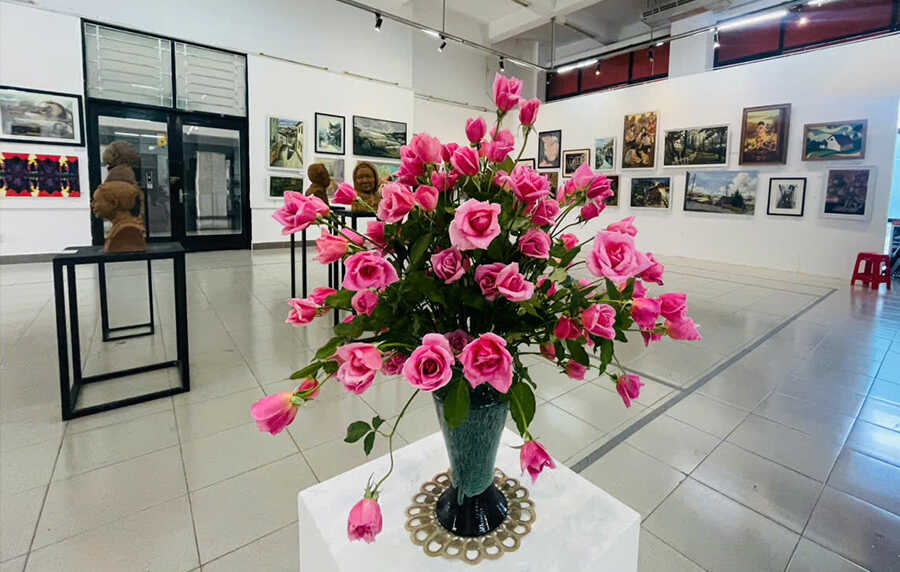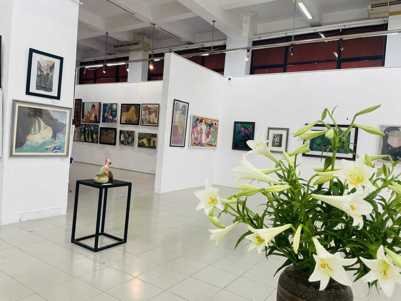 Phát biểu tại lễ khai mạc TS. Ngô Việt Hùng - Bí thư Đảng ủy Nhà trường khẳng định triển lãm không chỉ là sự kiện nghệ thuật mà còn là nơi kết nối các thế hệ, thể hiện sự giao thoa giữa kinh nghiệm và sức trẻ. Các tác phẩm trưng bày cho thấy sự đa dạng về chất liệu và loại hình, từ hội họa, đồ họa đến điêu khắc, góp phần tạo nên một bức tranh nghệ thuật sinh động và giàu cảm xúc. Triển lãm năm nay quy tụ 168 tác phẩm của 18 nữ giảng viên và 150 sinh viên nữ. Mỗi tác phẩm là một góc nhìn riêng, phản ánh đời sống, tình cảm và những tìm tòi sáng tạo trong ngôn ngữ tạo hình. Sự phong phú trong chất liệu như sơn mài, lụa, khắc gỗ, sơn dầu, in kim loại… đã góp phần làm nổi bật sự kết hợp hài hòa giữa truyền thống và hiện đại.