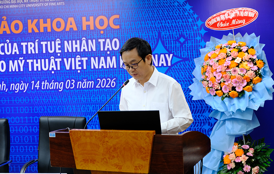 Ngày 14/03/2026 trường ĐH Mỹ thuật TP.HCM tổ chức Hội thảo khoa học với chủ đề “Tác động của trí tuệ nhân tạo đối với sự sáng tạo mỹ thuật Việt Nam hiện nay” tại phòng họp lầu 3 Nhà học thực hành.