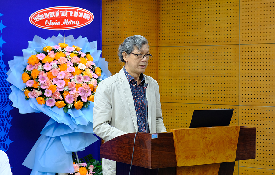 PGS.TS Nguyễn Văn Minh - Hiệu trưởng Trường ĐH Mỹ thuật TP.HCM phát biểu tại hội thảo