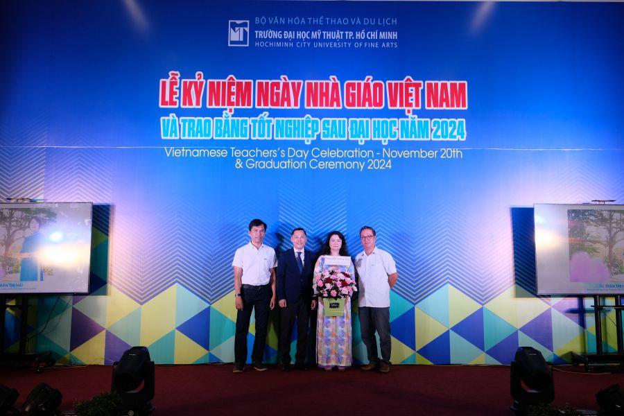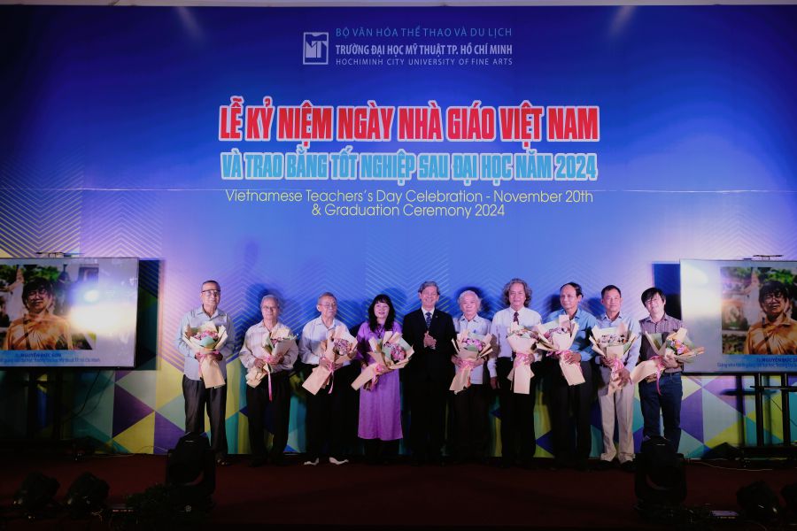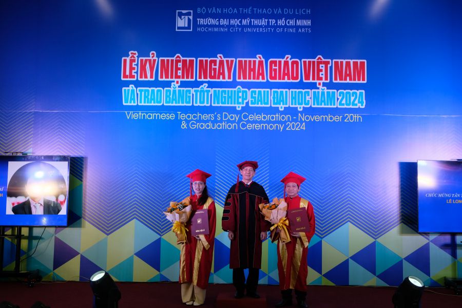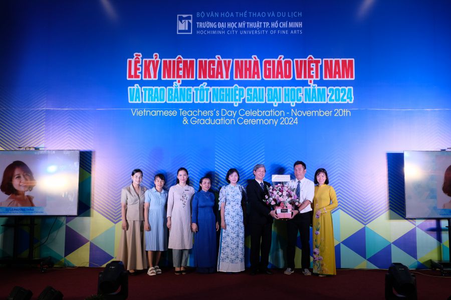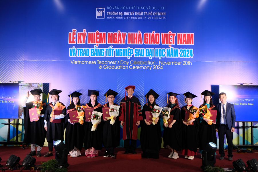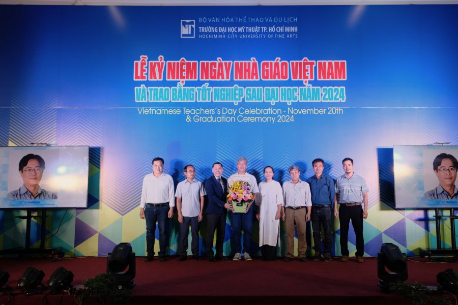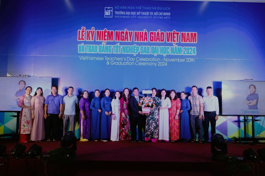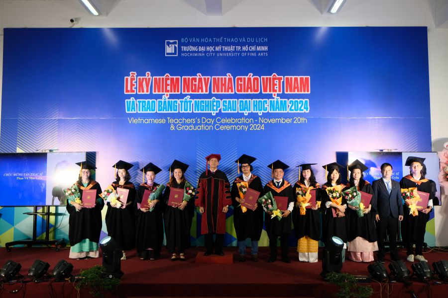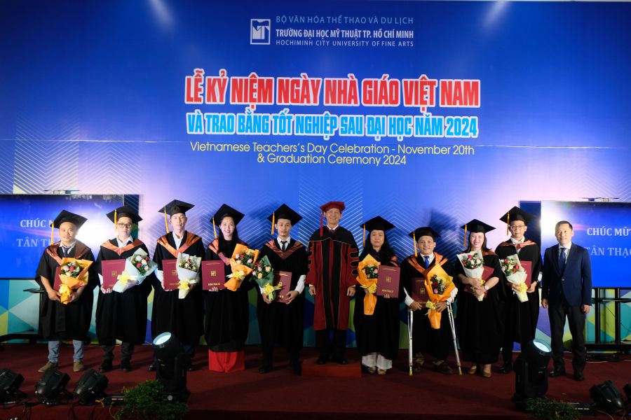 Sáng này 20/11/2024, Trường Đại học Mỹ thuật TP.HCM long trọng tổ chức Lễ kỷ niệm 42 năm ngày Nhà Giáo Việt Nam (20/11/1982-20/11-2024) nhằm ôn lại truyền thống và tôn vinh thầy cô giáo đã có nhiều cống hiến trong sự nghiệp giáo dục và đào tạo; đồng thời trao bằng tốt nghiệp Sau đại học tại Không gian nghệ thuật ArtSpace lầu 1 Nhà học thực hành.