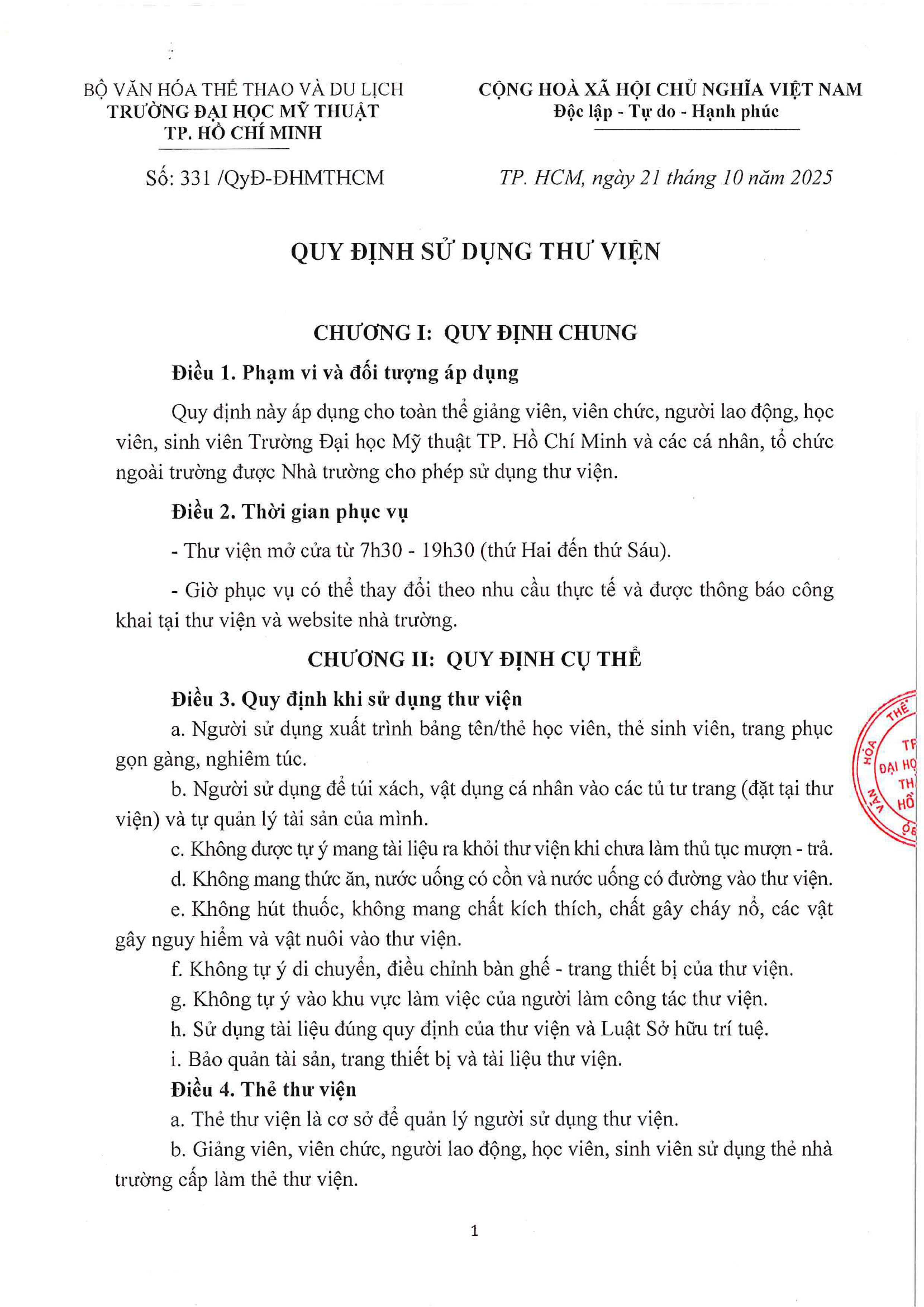 TRƯỜNG ĐẠI HỌC MỸ THUẬT TP. HCM| Tel : (84-8) 38 030 237 | Email : info@hcmufa.edu.vn