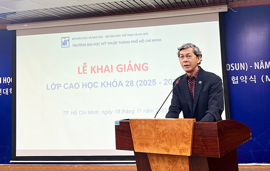 Sáng này 18/11/2025, Bộ phận Sau đại học (Phòng Đào tạo - QLKH và Hợp tác Quốc tế), trường Đại học Mỹ thuật TP.HCM đã tổ chức Lễ khai giảng Thạc sĩ Mỹ thuật cho các học viên khóa 28 tại phòng họp lầu 3 Tòa nhà Lý thuyết.