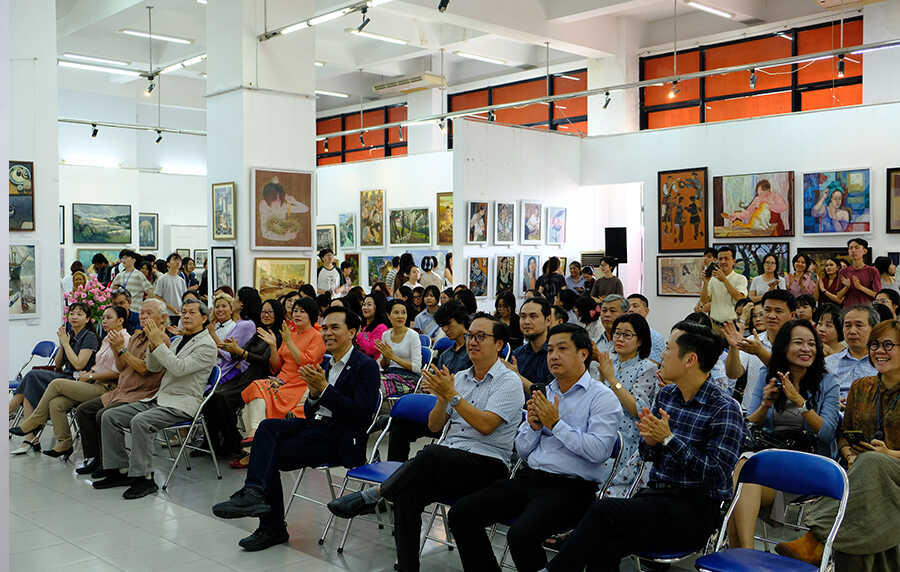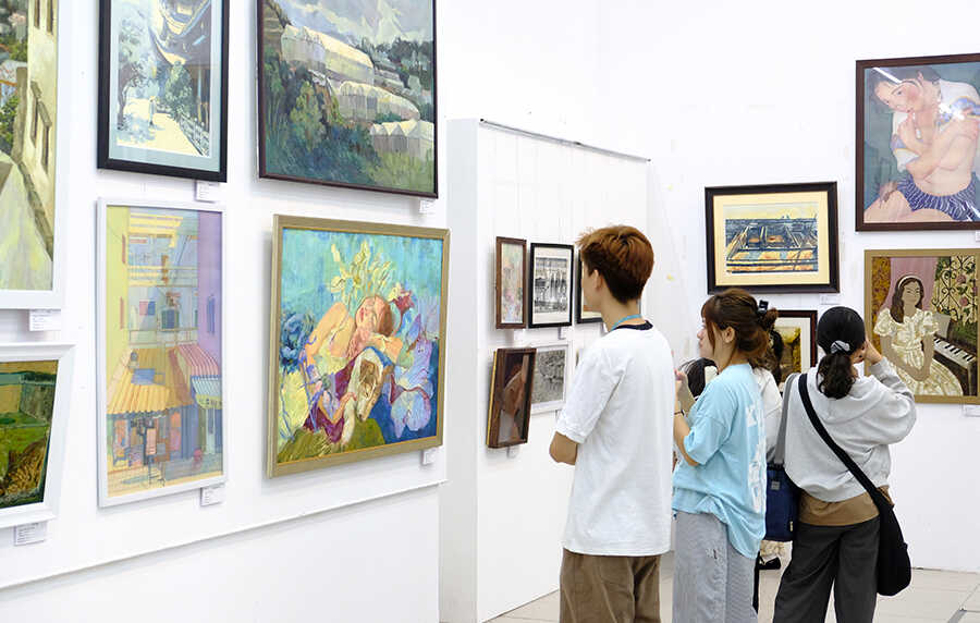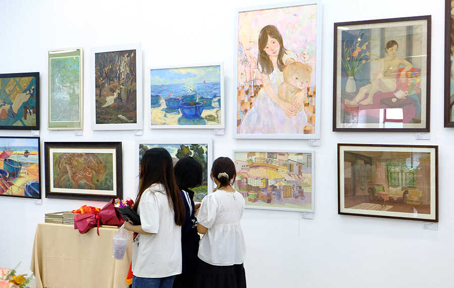 Phát biểu tại lễ khai mạc TS. Ngô Việt Hùng - Bí thư Đảng ủy Nhà trường khẳng định triển lãm không chỉ là sự kiện nghệ thuật mà còn là nơi kết nối các thế hệ, thể hiện sự giao thoa giữa kinh nghiệm và sức trẻ. Các tác phẩm trưng bày cho thấy sự đa dạng về chất liệu và loại hình, từ hội họa, đồ họa đến điêu khắc, góp phần tạo nên một bức tranh nghệ thuật sinh động và giàu cảm xúc. Triển lãm năm nay quy tụ 168 tác phẩm của 18 nữ giảng viên và 150 sinh viên nữ. Mỗi tác phẩm là một góc nhìn riêng, phản ánh đời sống, tình cảm và những tìm tòi sáng tạo trong ngôn ngữ tạo hình. Sự phong phú trong chất liệu như sơn mài, lụa, khắc gỗ, sơn dầu, in kim loại… đã góp phần làm nổi bật sự kết hợp hài hòa giữa truyền thống và hiện đại.