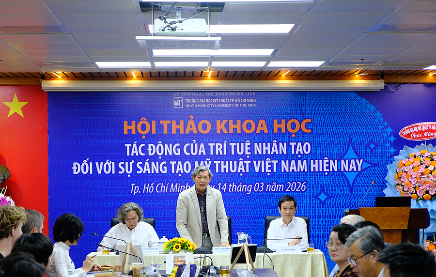 Ngày 14/03/2026 trường ĐH Mỹ thuật TP.HCM tổ chức Hội thảo khoa học với chủ đề “Tác động của trí tuệ nhân tạo đối với sự sáng tạo mỹ thuật Việt Nam hiện nay” tại phòng họp lầu 3 Nhà học thực hành.