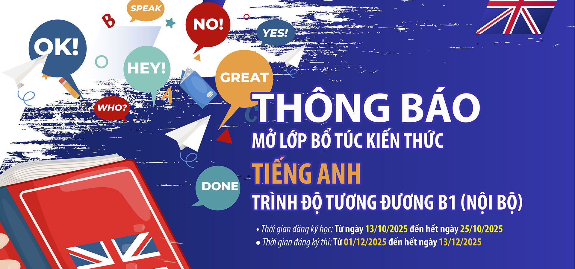Thông báo mở lớp bổ túc kiến thức Tiếng Anh - Trình độ tương đương B1-Đợt tháng 10-2025