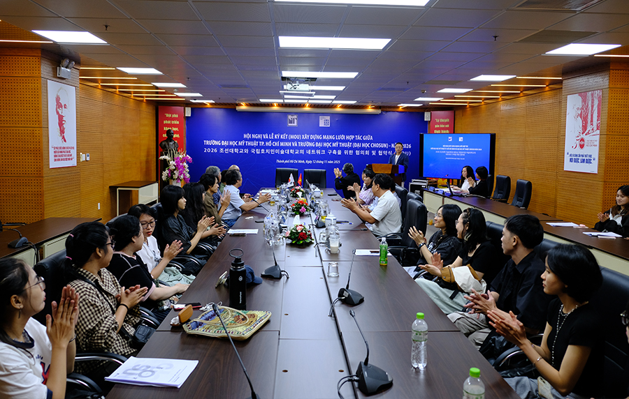 Ngày 12/11/2025, trường Đại học Mỹ thuật TP.HCM tổ chức Hội nghị ký kết và giao lưu với trường Đại học Mỹ thuật Chosun (Hàn Quốc) tại Phòng họp lầu 3 Nhà học lý thuyết.