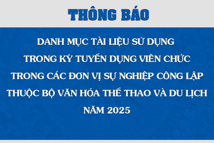 Thông báo Danh mục tài liệu sử dụng trong kỳ tuyển dụng viên chức trong các đơn vị sự nghiệp công lập thuộc Bộ Văn hóa, Thể thao và Du lịch năm 2025