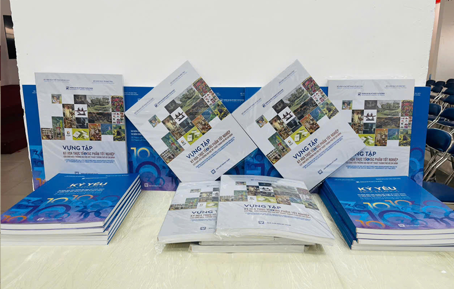 Bên cạnh đó, PGS.TS. Nguyễn Văn Minh – Hiệu trưởng Nhà trường đã giới thiệu các ấn phẩm mới phục vụ công tác giảng dạy và nghiên cứu, gồm: Vựng tập Ký họa thực tế và tác phẩm Tốt nghiệp của sinh viên Trường Đại học Mỹ thuật TP. Hồ Chí Minh; Kỷ yếu 30 năm đào tạo trình độ thạc sĩ (1995 - 2025) và 10 năm đào tạo trình độ Tiến sĩ (2015 - 2025); cùng ấn phẩm Triển lãm nghệ thuật Sơn mài Sài Gòn lần thứ 4 - năm 2026.