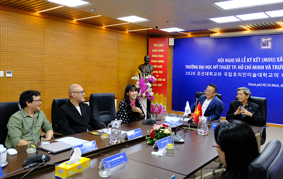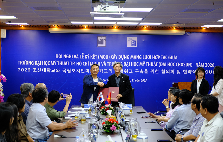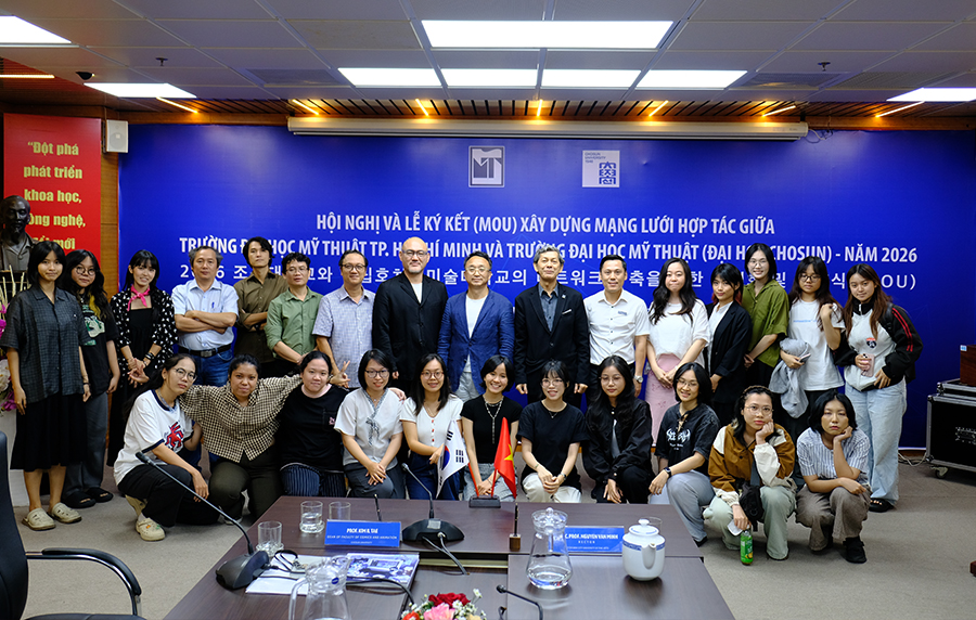 Ngày 12/11/2025, trường Đại học Mỹ thuật TP.HCM tổ chức Hội nghị ký kết và giao lưu với trường Đại học Mỹ thuật Chosun (Hàn Quốc) tại Phòng họp lầu 3 Nhà học lý thuyết.