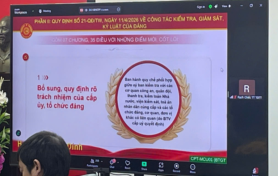 Tại Hội nghị, các đồng chí lãnh đạo BCH Trung ương Đảng đã phổ biến những nội dung các chuyên đề trọng tâm về công tác xây dựng Đảng, tập trung vào việc triển khai quy định thi hành Điều lệ Đảng; nâng cao hiệu lực, hiệu quả công tác kiểm tra, giám sát và kỷ luật của Đảng; tăng cường công tác chính trị, tư tưởng; cũng như đẩy mạnh vai trò lãnh đạo của Đảng trong phòng, chống tham nhũng, lãng phí, tiêu cực; đồng thời quán triệt các kết luận về kế hoạch phát triển kinh tế - xã hội, tài chính quốc gia, đầu tư công trung hạn giai đoạn 2026 - 2030 gắn với mục tiêu tăng trưởng nhanh và bền vững. Các nội dung chuyên đề đã góp phần làm rõ những điểm mới, yêu cầu và nhiệm vụ trọng tâm trong công tác xây dựng, chỉnh đốn Đảng, qua đó nâng cao nhận thức, trách nhiệm của cán bộ, đảng viên trong việc thực hiện nhiệm vụ chính trị tại đơn vị.